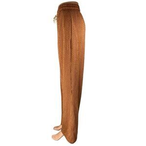 Zara Brown Striped Elastic Waist Drawstring Wide Leg Trousers Lounge Pants Sz L