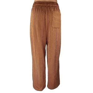 Zara Brown Striped Elastic Waist Drawstring Wide Leg Trousers Lounge Pants Size L
