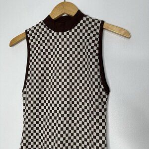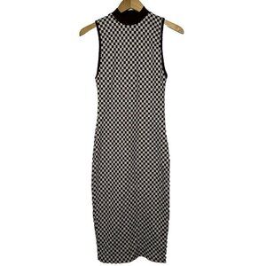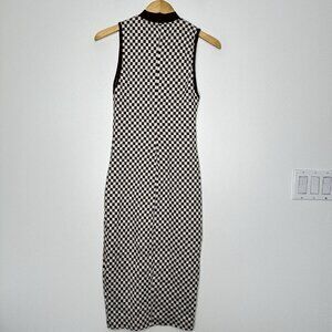 Zara Brown Sweater Knit Dress Size S Check Midi