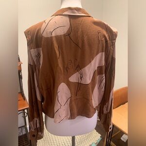 Zara Brown Tie Front Button Down Cropped Shirt size XS great colors don’t let this one past you by.