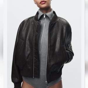 Zara Brown ZW Leather Bomber Brown Jacket