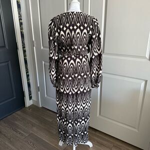 Zara Brown and Cream Boho Ikat Print Long Sleeve Maxi Dress Size XS