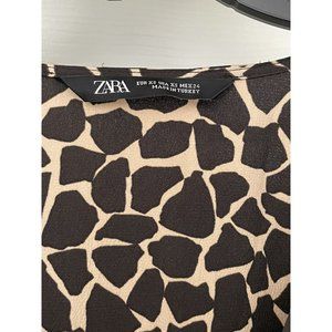NWT Zara Brown giraffe Animal Print Full Button Down Dress V Neck size XS. Excellent condition, stunning dress, smoke free home
