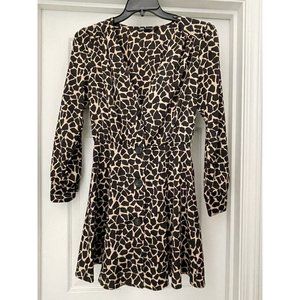 Zara Brown giraffe Animal Print Full Button Down Dress V Neck size XS