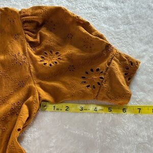 Zara Brown/Rust Eyelet Short Sleeve Wrap Double Button Blouse. size S