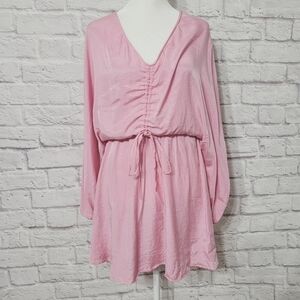 Zara Bubble Gum Pink Stain Drap Mini Dress Rouching Small