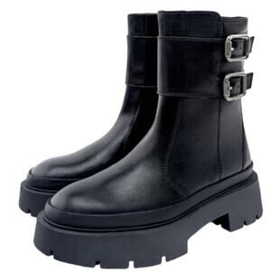 Zara Buckled Moto Goth Streetwear Lug SOLE Contemporary Boots Size 37 US 6.5