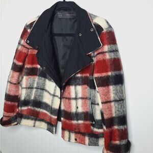 Zara Buffalo Plaid Moto Jacket Wool Mohair Women's Medium Grunge Check Fall