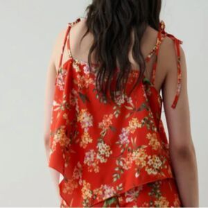 Zara Bundle of Two Red Floral Green Tropical Hawaiian Print Tie Shoulder Tank Bandana Cami Tops