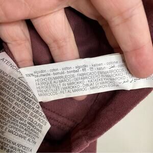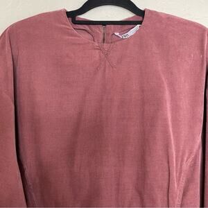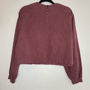 Zara Burgundy 100% Cotton Crewneck Cinched Sleeve Top Small