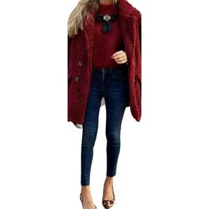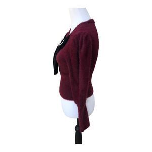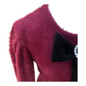 Zara Burgundy Bow Rhinestone Broach Long Sleeve Fuzzy Knit Sweater Top Sz S $129