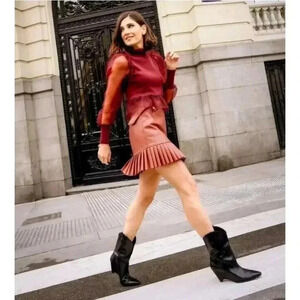 Zara Womens Burgundy Chiffon Ruffle Organza Puff Sleeves Blouse Top Size Small