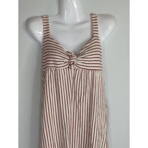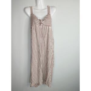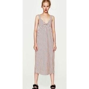 Zara Burgundy & Cream Striped Midi Dress Women's Medium Empire Waist Shift