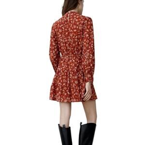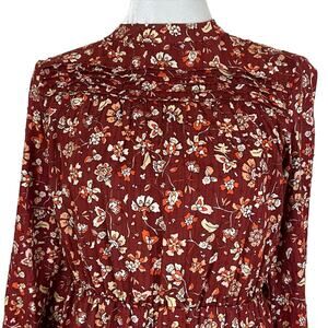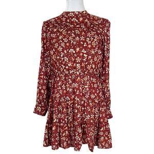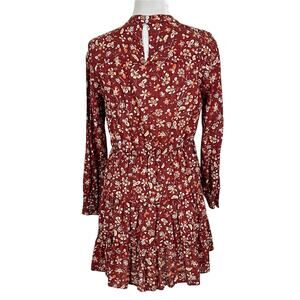 Zara Burgundy Floral Print Mock Neck Long Sleeve Mini Dress Size Small