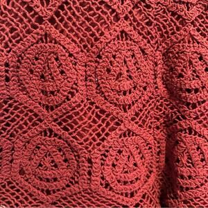 maroon deep red brick red high-waisted boho gypsy knit artsy crocheted rose floral bohemian festivalwear festival music concert summer