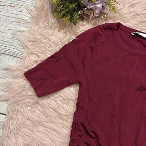 Zara Burgundy Ruched Drawstring Side Short Sleeve Dress sz S