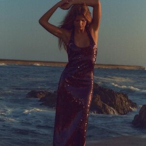 Zara Burgundy Sequin Halter Neck Dress