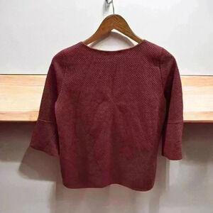 Zara Burgundy Wine Bell SleeveTextured Knit Dot Pattern Hi-Low Hem Size L Large