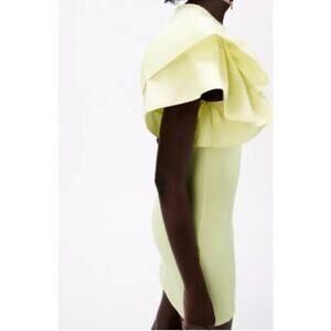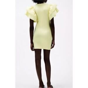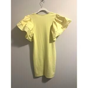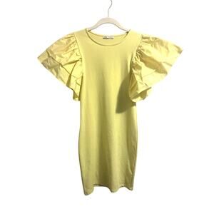Zara Butter Yellow Puff Voluminous Ruffle Poplin Sleeve Bodycon Mini Dress Sz. M