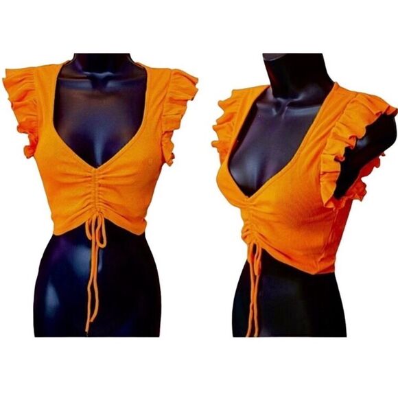 Zara Butterfly Sleeve Knit Cropped Top in Orange Women’s M