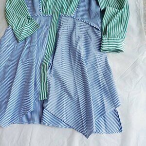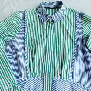 Zara Button Down Striped Shirt Dress Sz XS Long Sleeves Irregular Hem