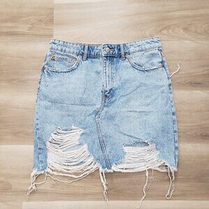 Zara Button Fly Distressed Fringed Hemline Denim Skirt Blue