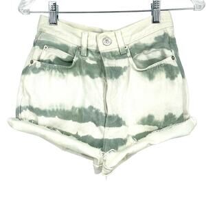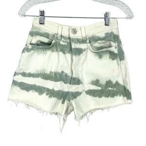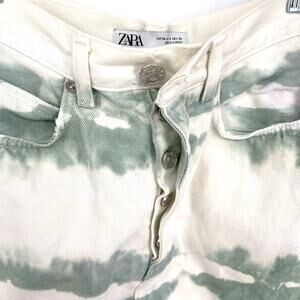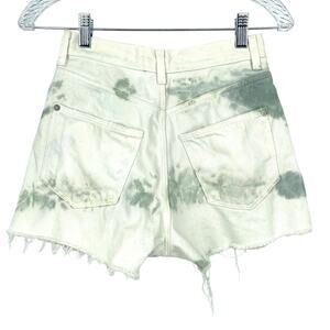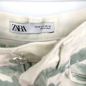 Zara Button Fly High Waisted Jean Shorts White Green Distressed Size 2