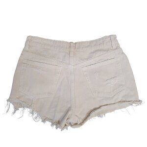 Zara Off-White Cutoff Denim High Rise Shorts Button Fly Distressed Womens 6 Jean