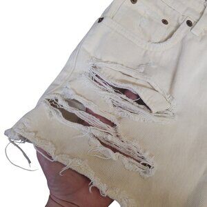 Zara Button Fly Off-White Cutoff Denim High Rise Shorts Distressed Womens 6 Jean