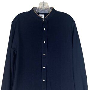 Zara Button Front Top Mens Large Blue Regular Fit Elbow Patches