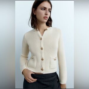 This elegant cream sweater features a classic button-up design, perfect for any occasion. Its soft texture and stylish look make it a must-have in your wardrobe.