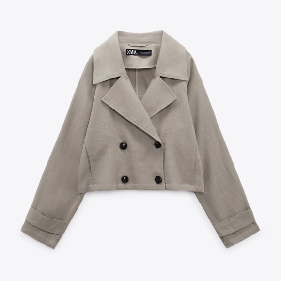 Trench coat made of linen blend fabric. Lapel collar and long sleeves with button tab cuffs. Front pockets. Front double breasted button closure.