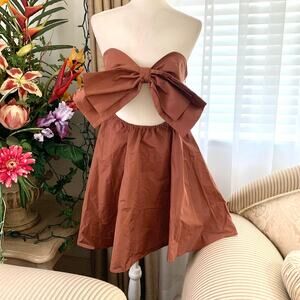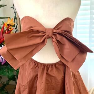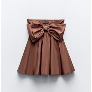 NWT Zara CUT OUT BOW TAFFETA DRESS in Clay Brown