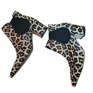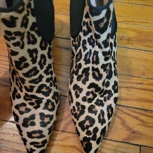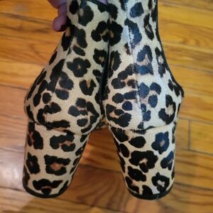 Zara Calf hair leopard print bootie. It has a chunky heel. In good used condition. One of the boots shows a small patch of calf hair missing pic 4 but barely noticeable. Size 39. fits 8 to 8.5