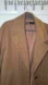 Elegant camel brown coat with a tailored fit. Features a single button closure and wide lapels.
