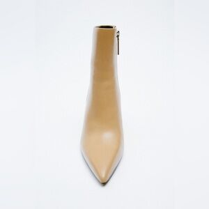 Elegant camel boots with a sleek wedge heel. Modern pointed toe. Versatile style for any outfit.