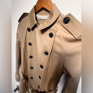 Zara Camel mid length khaki tan Trench Coat. This is in excellent preowned condition. Measure s length 32.5”