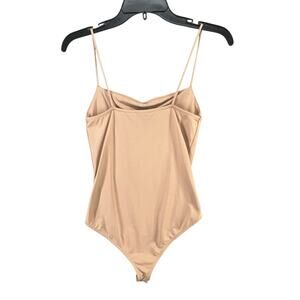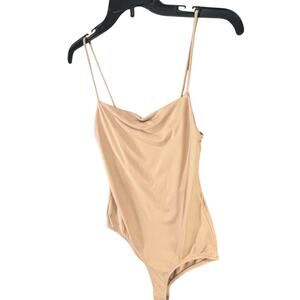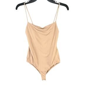 Zara Cami Bodysuit Womens Size M Tan Cream Spaghetti Strap Body Hugging Casual Chic