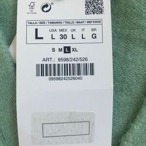 This listing is for a cardigan from Zara. It is mint green with beautiful faux pearl clusters on the front of the sweater. Size large it is new with tags.