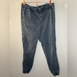 Comfortable gray jogger pants with elastic waistband and cuffs. Perfect for casual wear.