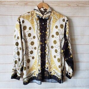 Zara Chain Print Button Front Long Sleeve Blouse Blogger Favorite Size Small