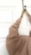 Stylish beige handbag with a textured design. Features a gold zipper for a chic look.