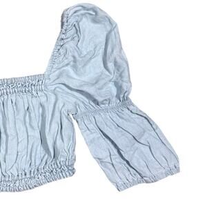 Zara Chambray Crop Top Puff Sleeve Shirt Denim Open Back Size Small Cottage