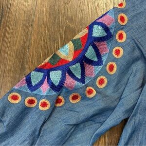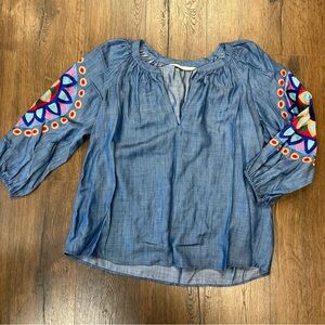 Zara Chambray Embroidered Sleeve Blouse Size XS