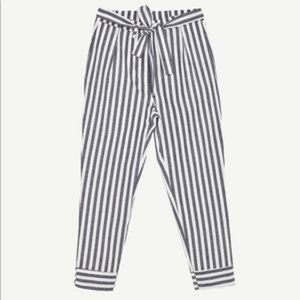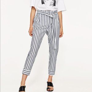 Zara Chambray Striped Paper Bag Waist Pants XS