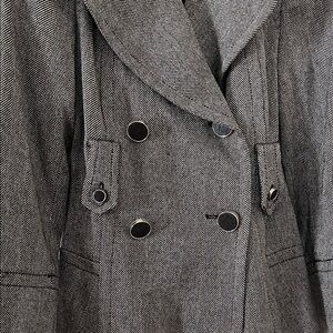 Chic charcoal blazer with double-breasted design. Features stylish lapels and button details. Ideal for a polished look.