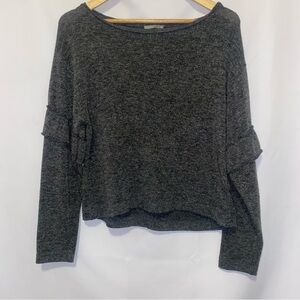 Zara Charcoal Gray Ruffled Cozy Boxy Pullover Long-sleeved Sweater Size Small