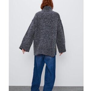 Zara Charcoal Gray Turtleneck Oversized Knit Sweater