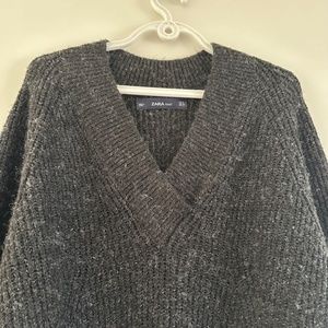 Zara Charcoal Knit Oversized Long Sleeve Sweater Dress, M