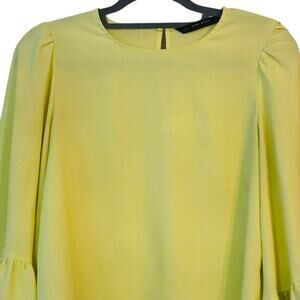 Zara Chartreuse Popover Blouse Ruffle Butterfly Sleeve Bright Cheery XS